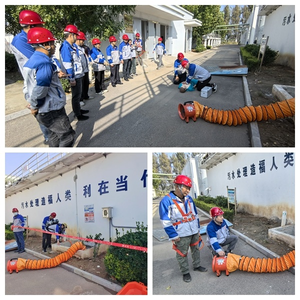 臨邑水務開展“有限空間作業”相關安全教育培訓,并在培訓完成后于出庫泵站開展有限空間事故應急演練。通過指導服務、輔導授課、警示教育、示范教學等方式,有效提升員工安全意識與應急處置能力,樹牢員工“先通風、再檢測、后作業”安全意識,為避免意外事故發生夯實了理論基礎。
