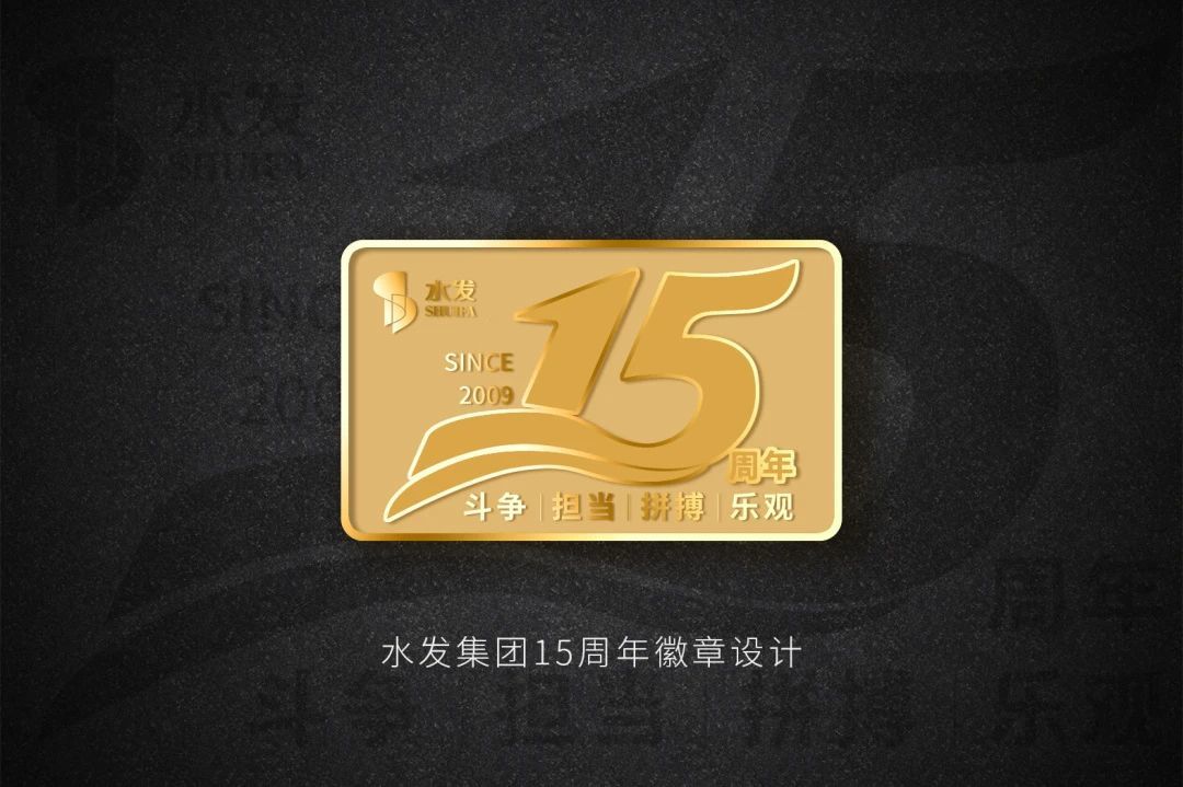 水發集團因水而興,從2009至2024年已走過15個春秋,數字“15”結合流動的水來設計,并結合了“斗爭、擔當、拼搏、樂觀”的新水發精神,金色的徽章更顯品質。
