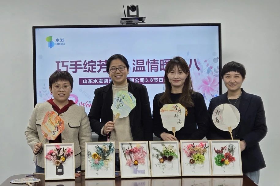 山東水發凱地建設有限公司組織全體女職工開展“巧手綻芳華 溫情暖三八”創意手工活動。活動在輕松愉悅的氛圍中拉開帷幕,制作漆扇、永生花相框......大家全情投入,現場歡聲笑語不斷,女職工們化身“藝術匠人”,在創作中感受節日溫暖,展現柔美匠心,凝聚奮進力量。