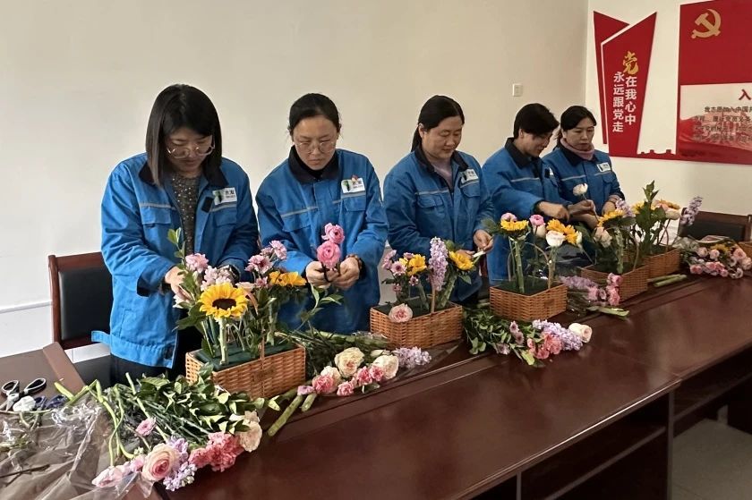 平陰水務發展有限公司開展手工花朵制作活動,公司準備了五顏六色的扭扭棒、熱熔膠以及各種小配飾,在溫馨愉悅的音樂聲中,女職工們滿懷欣喜地參與到花朵手工制作當中。有滿載祝福的郁金香,也有清廉高尚的蓮花,大家手捧花朵,個個笑顏如花。