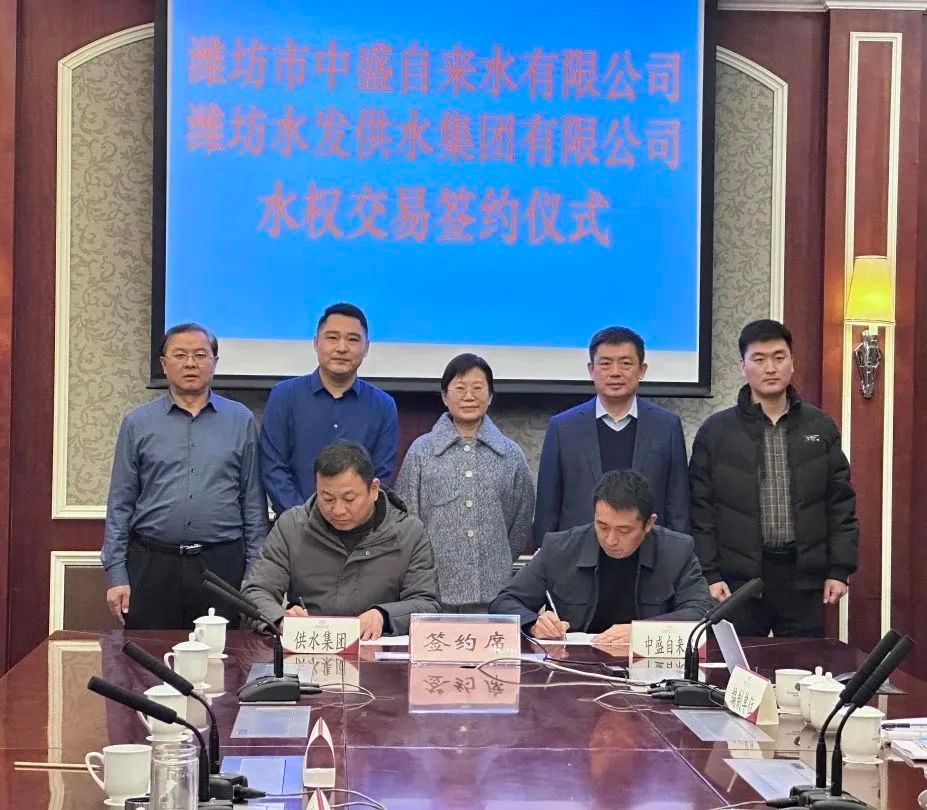 1月2日,水發水控濰坊水發供水集團有限公司與濰坊市中盛自來水有限公司舉行水權交易簽約儀式,標志著山東省首例跨區域取水權交易成功落地,是深入推進水權改革的標志性成果。省水利廳水資源處一級調研員題偉,濰坊市水利局黨組成員、市水利事業發展中心主任韓俊清,峽山區、濱海區水利局負責人參加評審并見證交易簽約儀式。