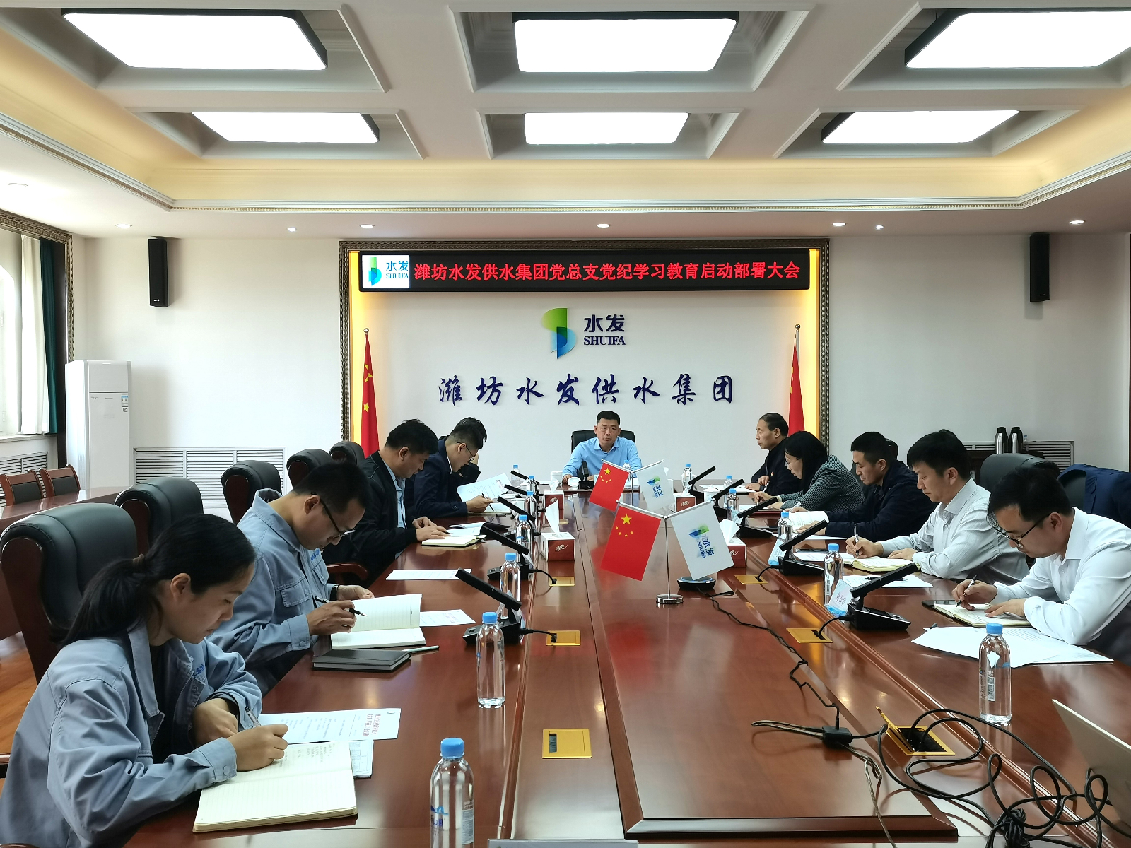 會議首先,傳達了《中國共產黨水發水務控股集團有限公司(籌)委員會關于開展黨紀學習教育的通知》要求,學習了水發水控集團黨委書記、董事長王忠華在開展黨紀學習教育啟動會上的講話,審議通過了《中國共產黨濰坊水發供水集團有限公司總支部委員會關于開展黨紀學習教育的通知》。