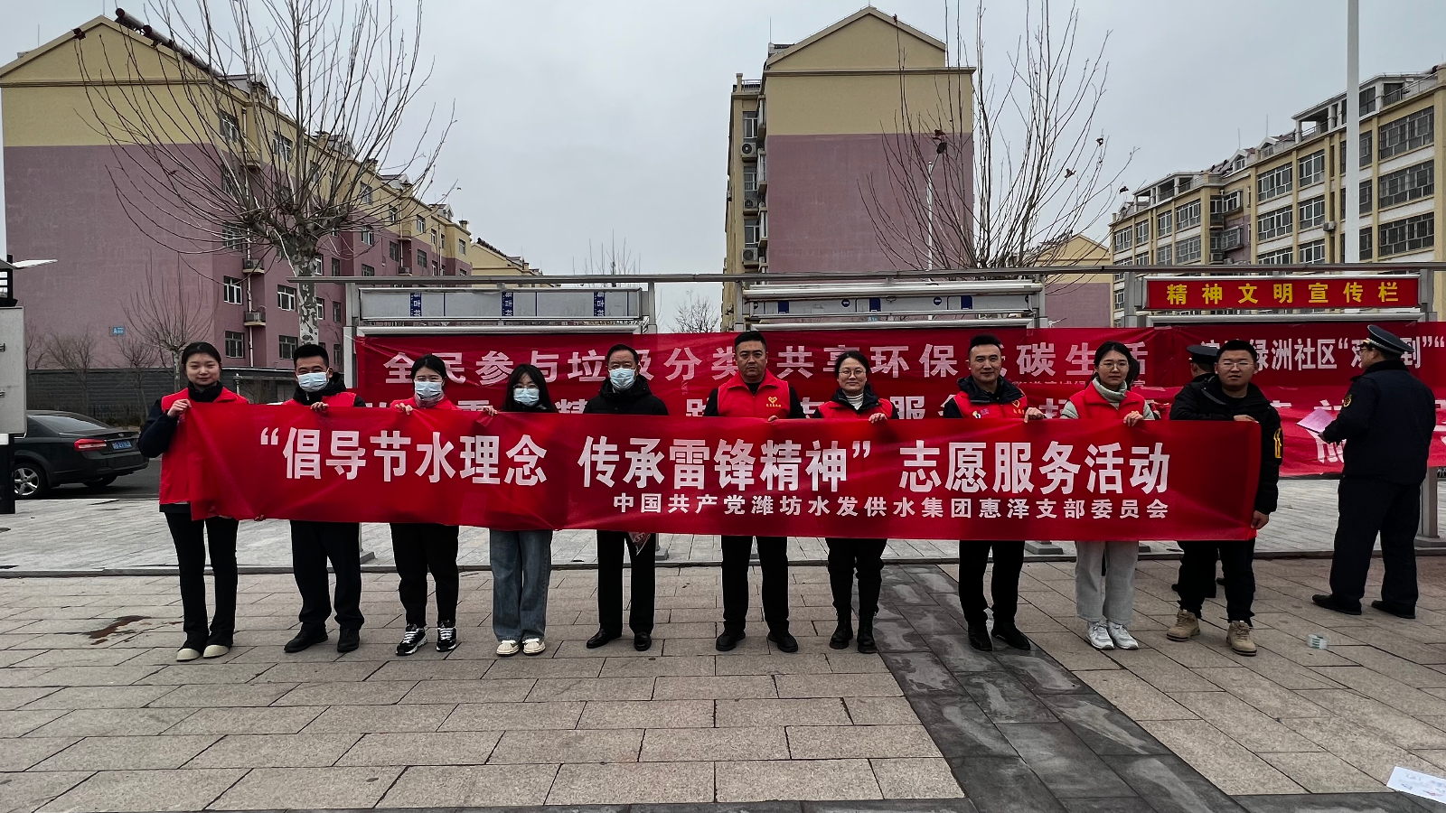 為貫徹落實習近平總書記關于深入開展學雷鋒活動的重要指示批示精神,積極踐行國企責任使命,在第61個“學雷鋒”紀念日即將到來之際,供水集團黨總支于3月5日,組織黨員干部前往濱城綠洲社區北海明珠小區廣場開展節水宣傳進社區志愿服務活動。